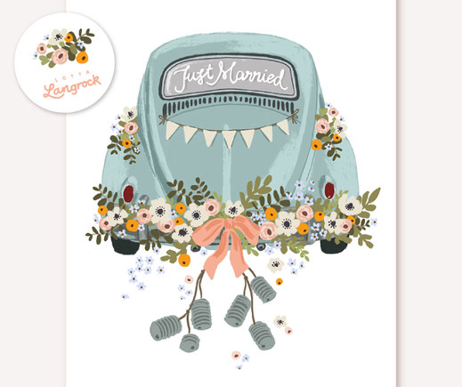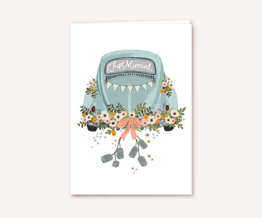 Liebevoll per Hand illustrierte Klappkarte "Just Married".