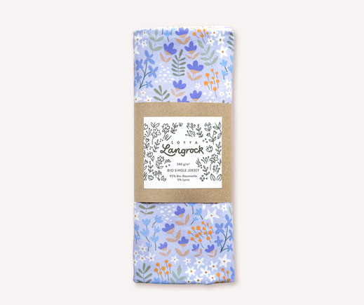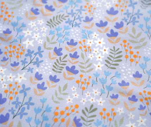 Bio Single Jersey im floralen Design "Blumentraum Blau".