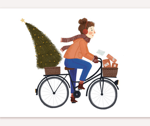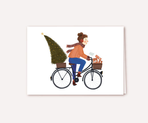 Liebevoll gestaltete Klappkarte "Weihnachtsfahrrad".