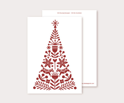 Ein Weihnachtsbäumchen mit skandinavischem Muster in klassischem Rot.