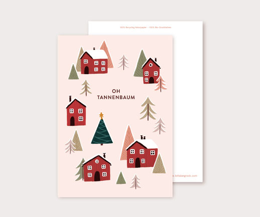 Liebevoll illustrierte weihnachtliche Postkarte "Oh Tannenbaum".